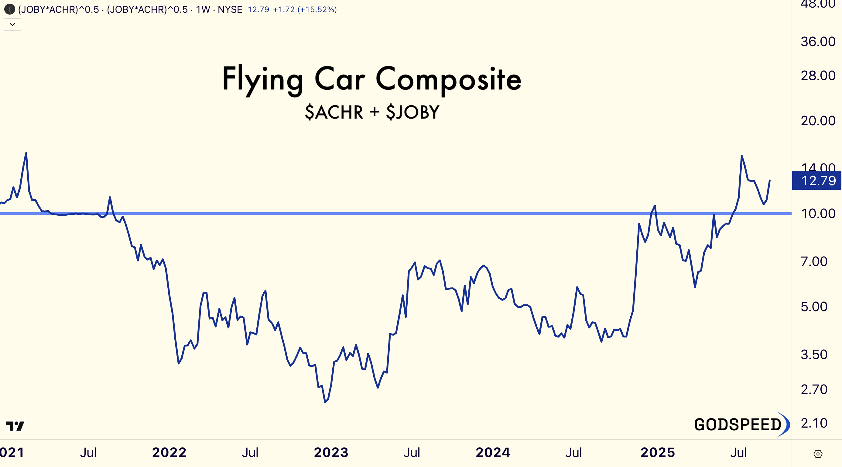 The Flying Car Composite ($ACHR + $JOBY) held above its SPAC // IPO listing price of $10.