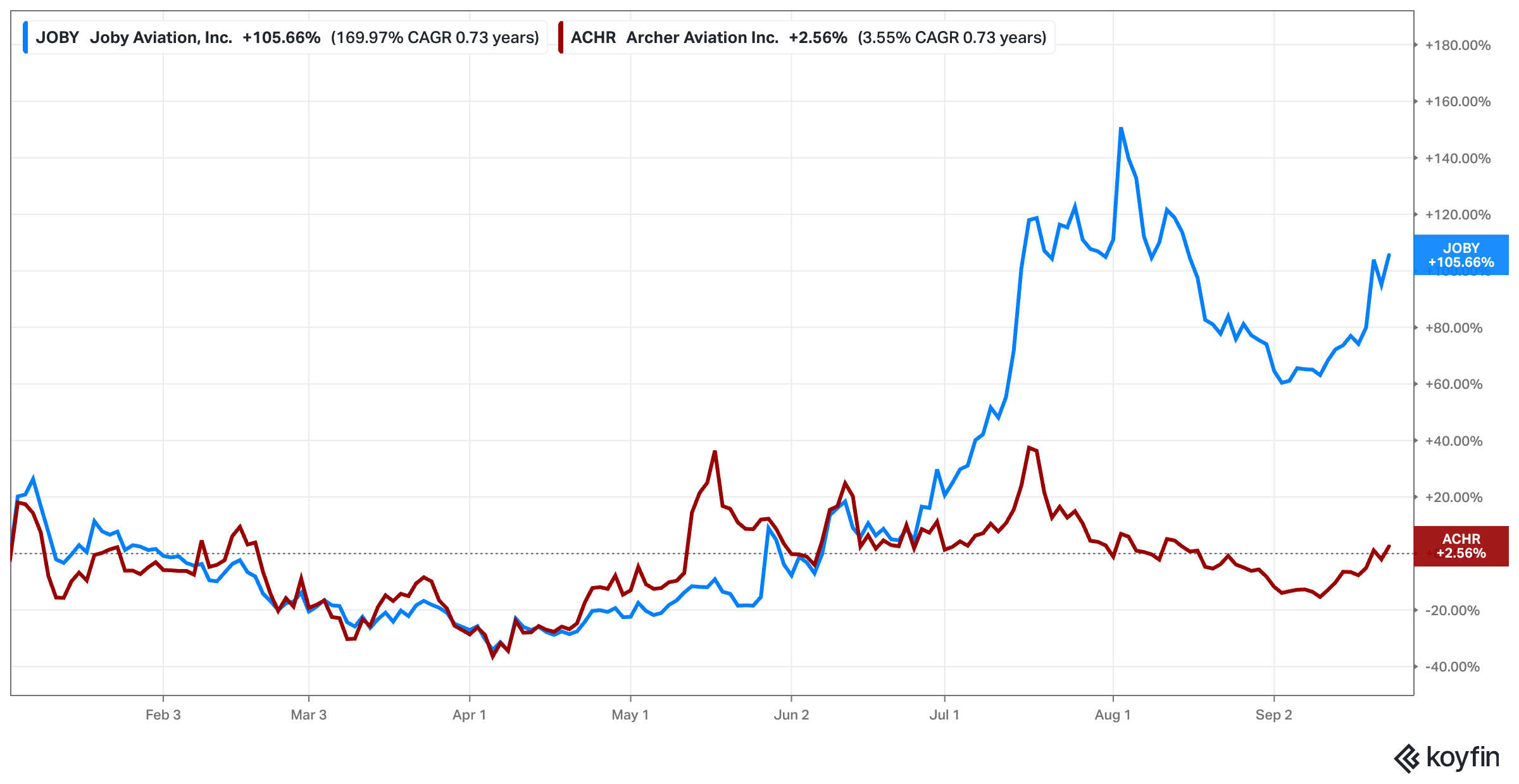 Wall Street has favored $JOBY as the stock is crushing $ACHR year to date.