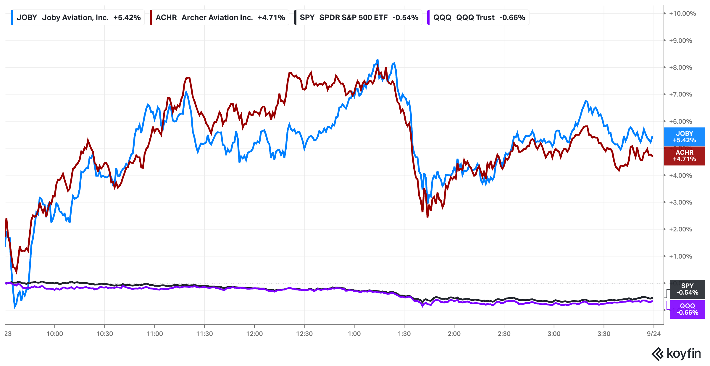 Yesterday, the S&P and Qs fell approx. -0.50%. The eVTOL leaders $JOBY and $ACHR gained +5.42% and +4.71%.
