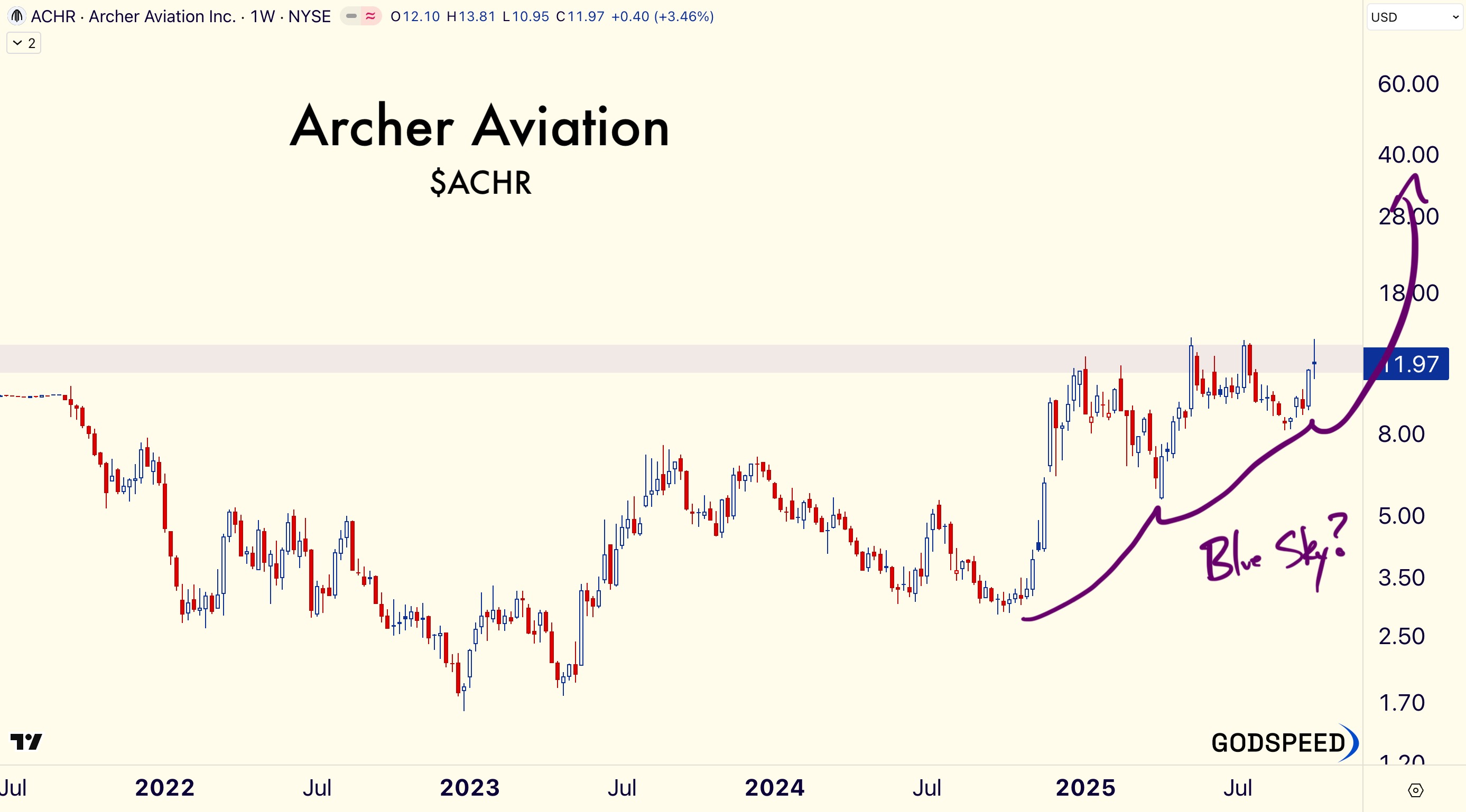 And $ACHR is on the verge of breaking out to all-time highs. If it's above $13, the path of least resistance is to the upside.