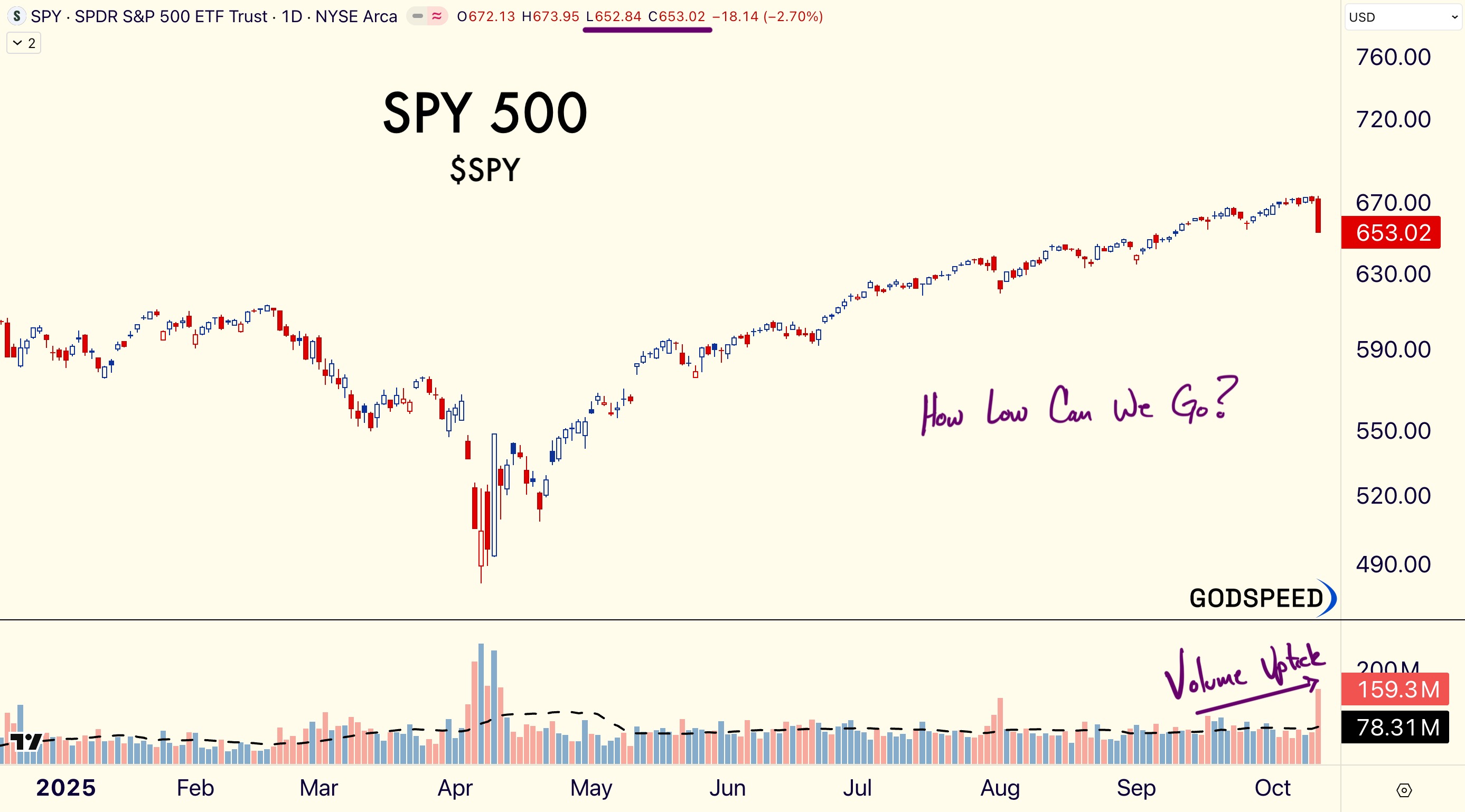 Here’s the daily S&P 500 chart. Highest daily volume since April 10th.