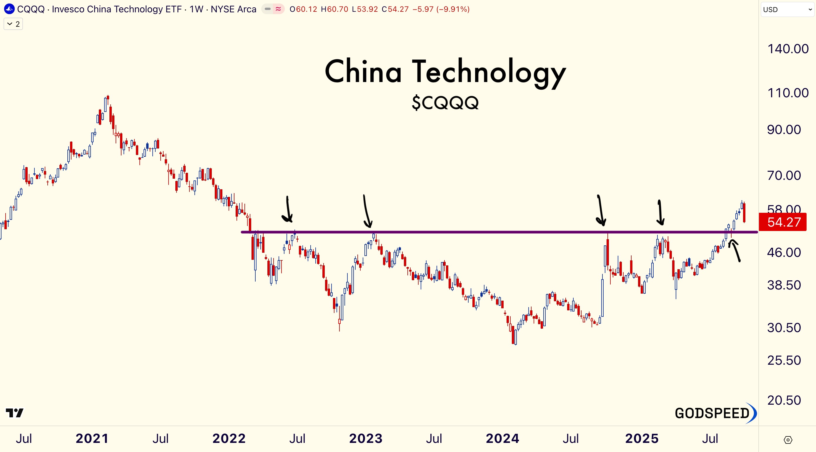 The ETF collapsed -7.80%, but is still well above its $50 pivot. I suspect a move to all-time highs if China is truly leading autonomous and robotics technology. Tell will tell…