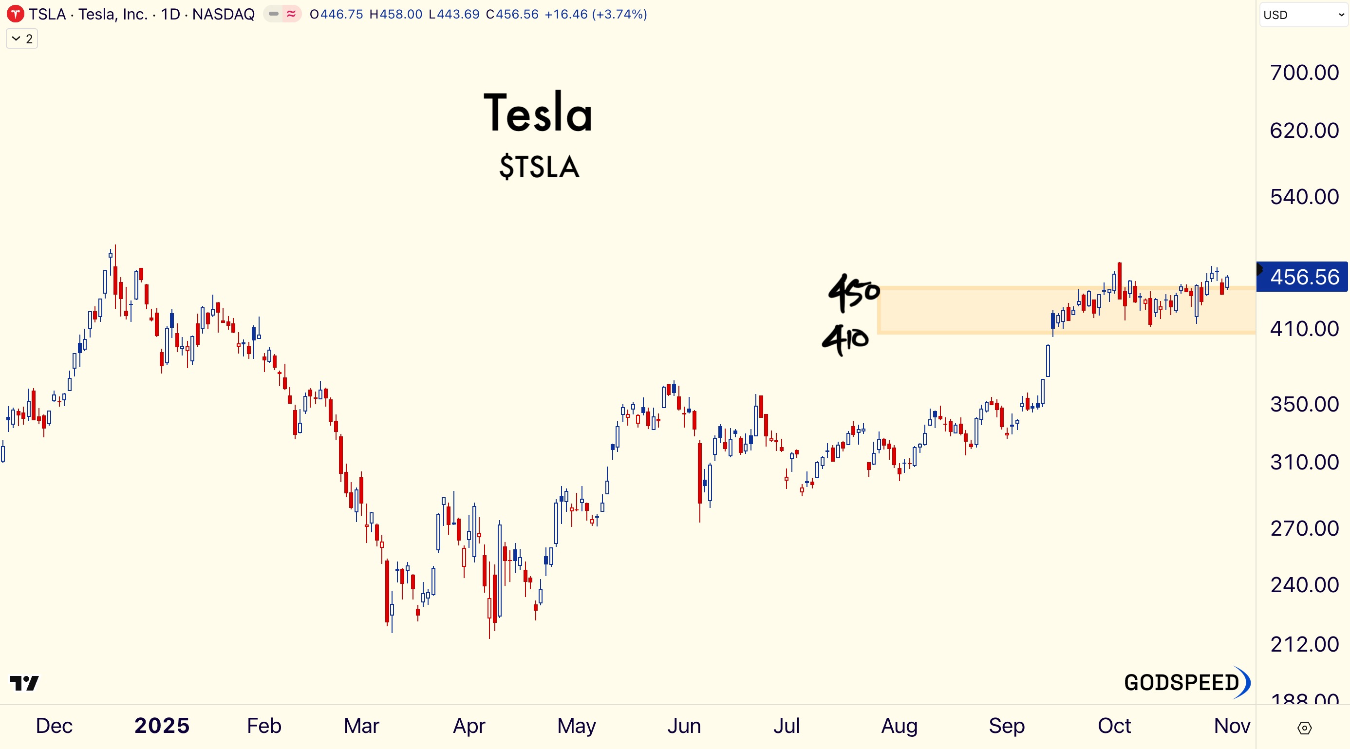 If buyers continue to defend $410, we want to be long Elon.
