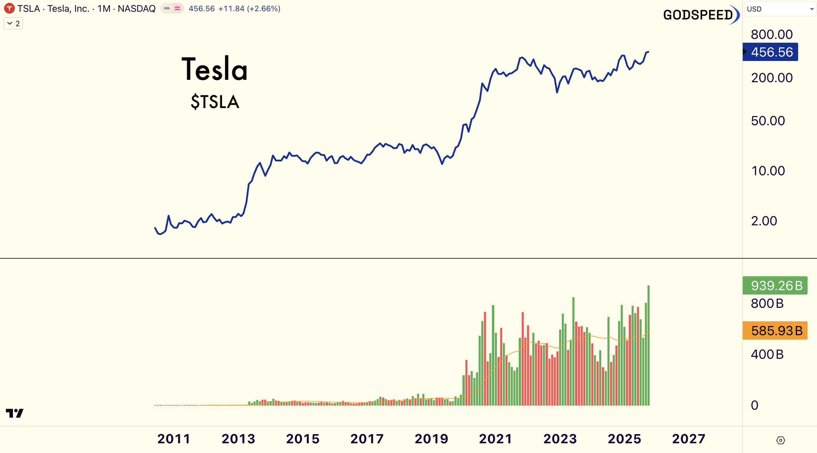 Here are a few gifs of the Tesla tape. The first showing its breakout in 2019 // 2020. See the volume upswing…