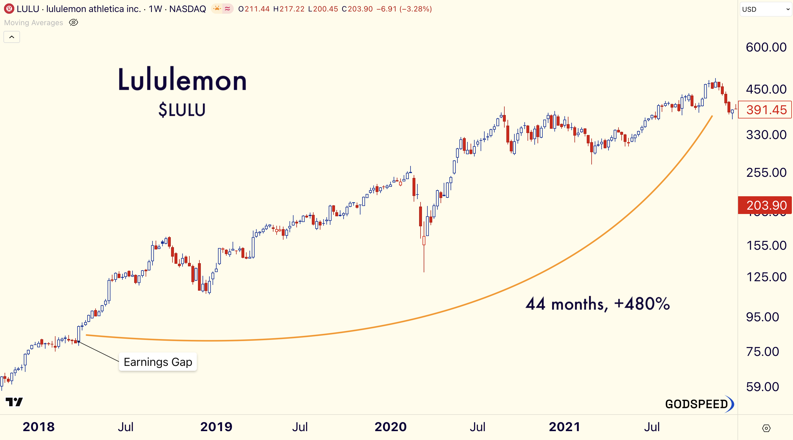 I can remember $LULU breaking out of its 6-year base in 2018 after its March earnings release.