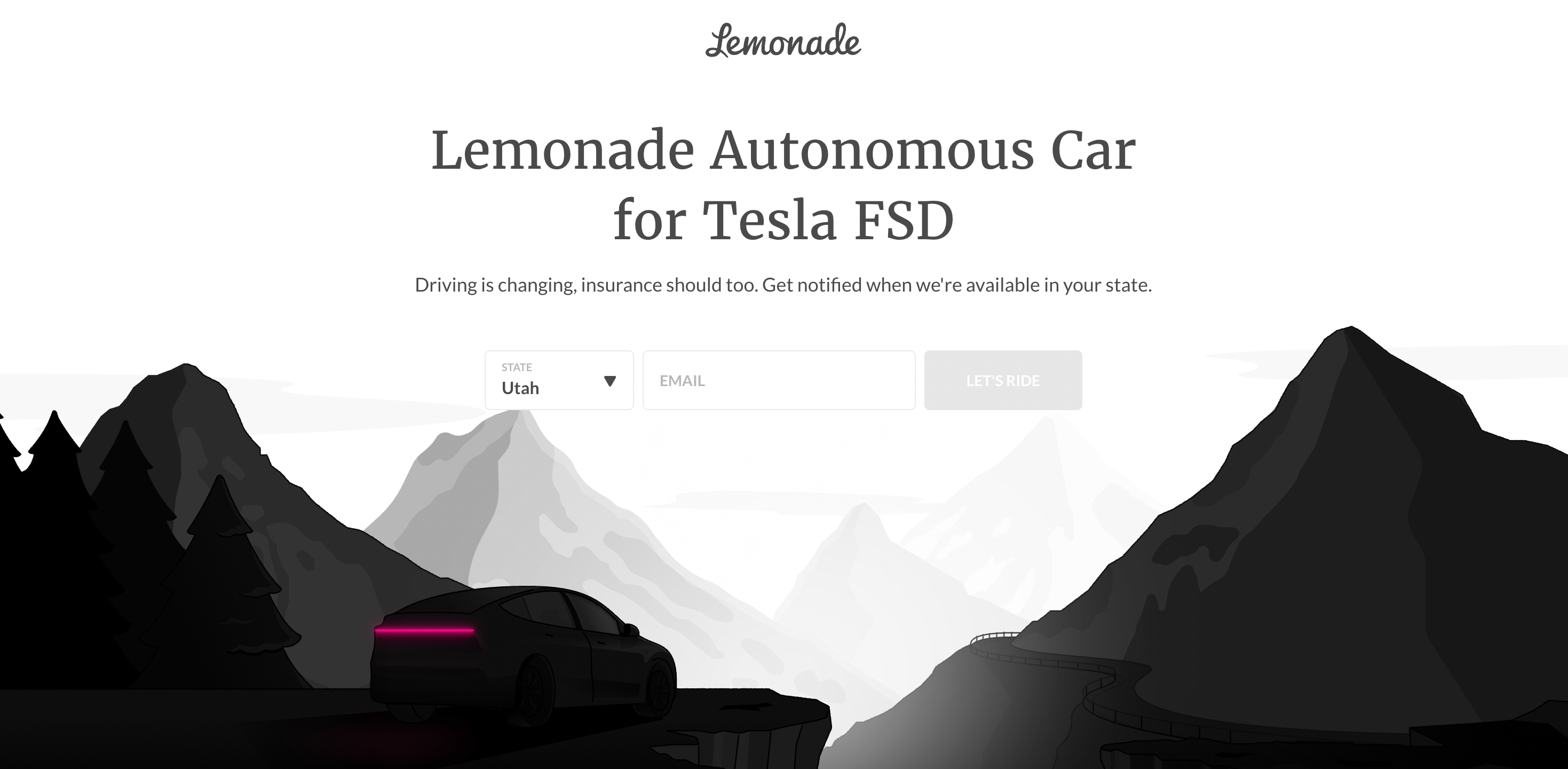 Lemonade introduced its Autonomous Car Insurance starting with Tesla vehicles, offering a 50% discount on pay-per-mile rates for Full-Self Driving (FSD).