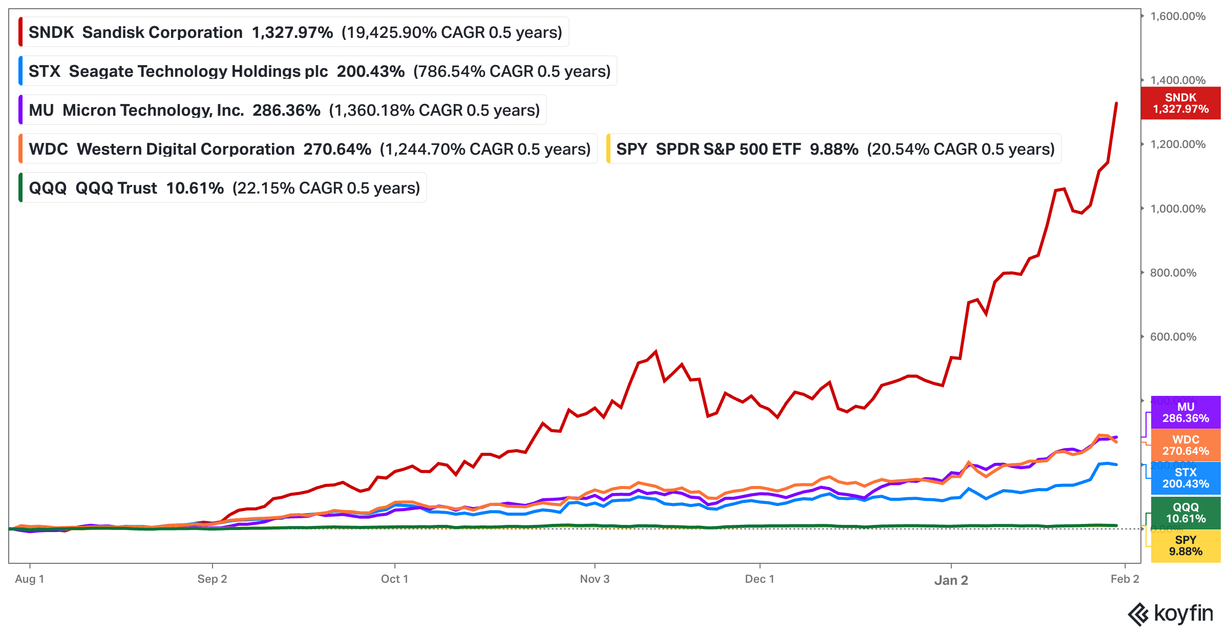 Check out the 6-month performance of the memory stocks… The fact is, hardware is frantically playing catch-up.