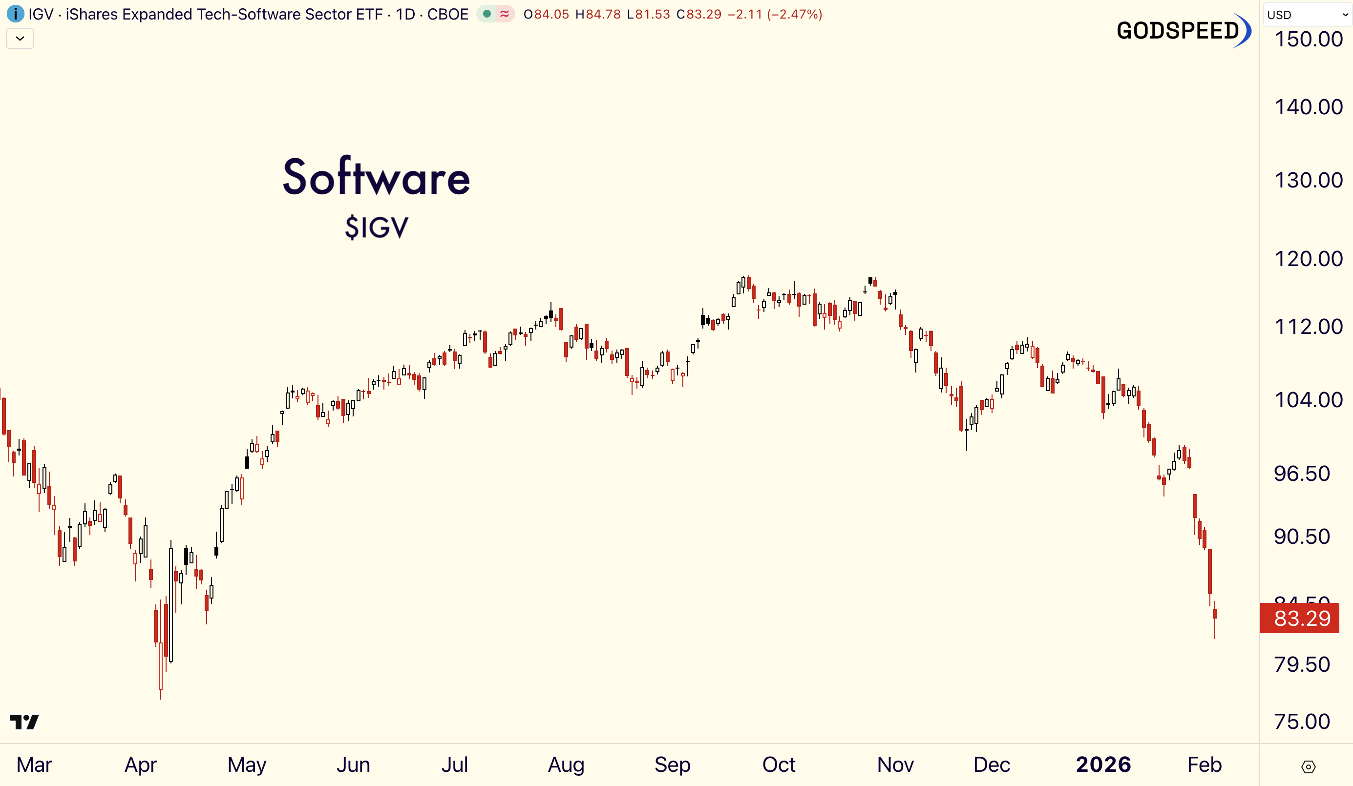 Since its all-time high close on 9/22/2025, the Software ETF $IGV is down -29%.