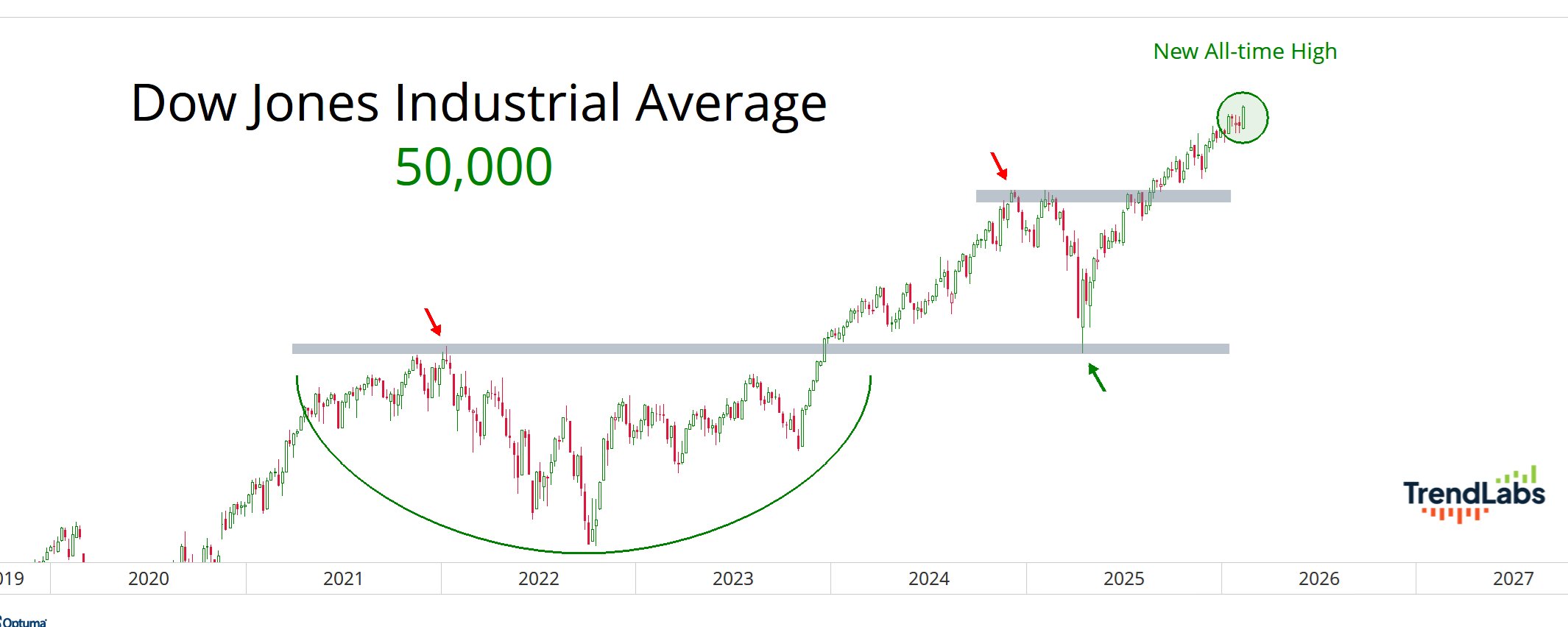 Despite tech’s lackluster start to 2026, the Dow trades above 50K. It’s an incredible feat!
