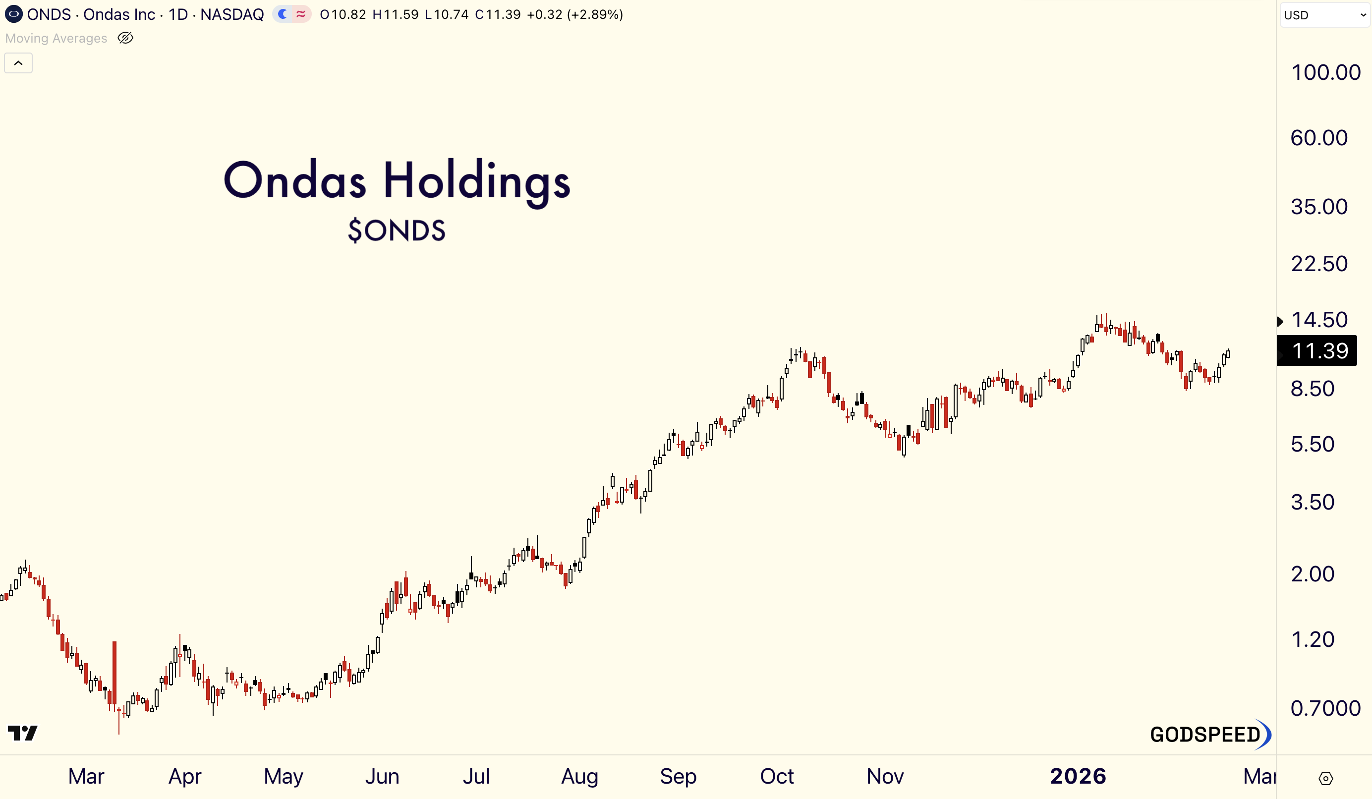 It’s also one of the strongest stocks since Trump’s Tariff Tantrum last April. In that time, $ONDS is up 1,400%. Winners Win.