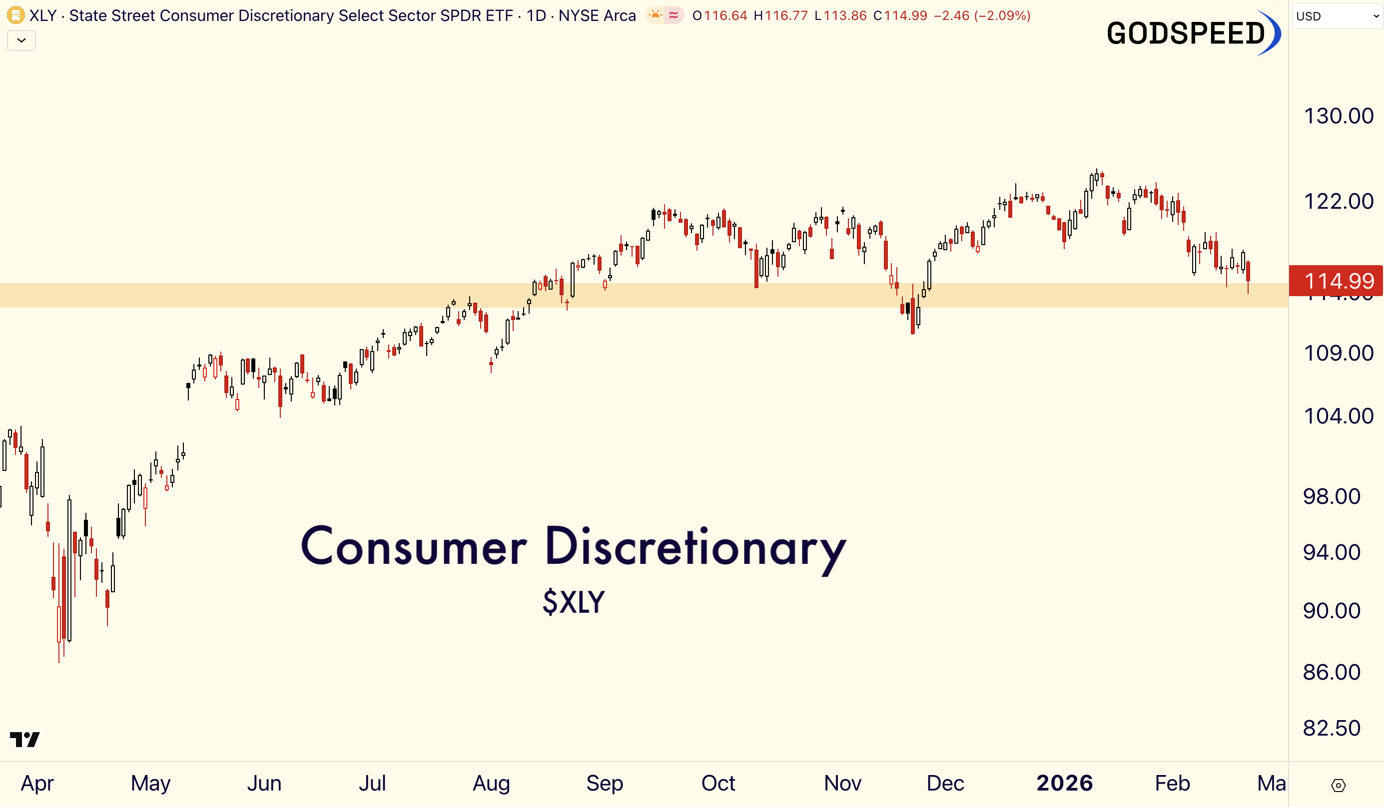 $XLY is down ~5% YTD and remains under pressure.