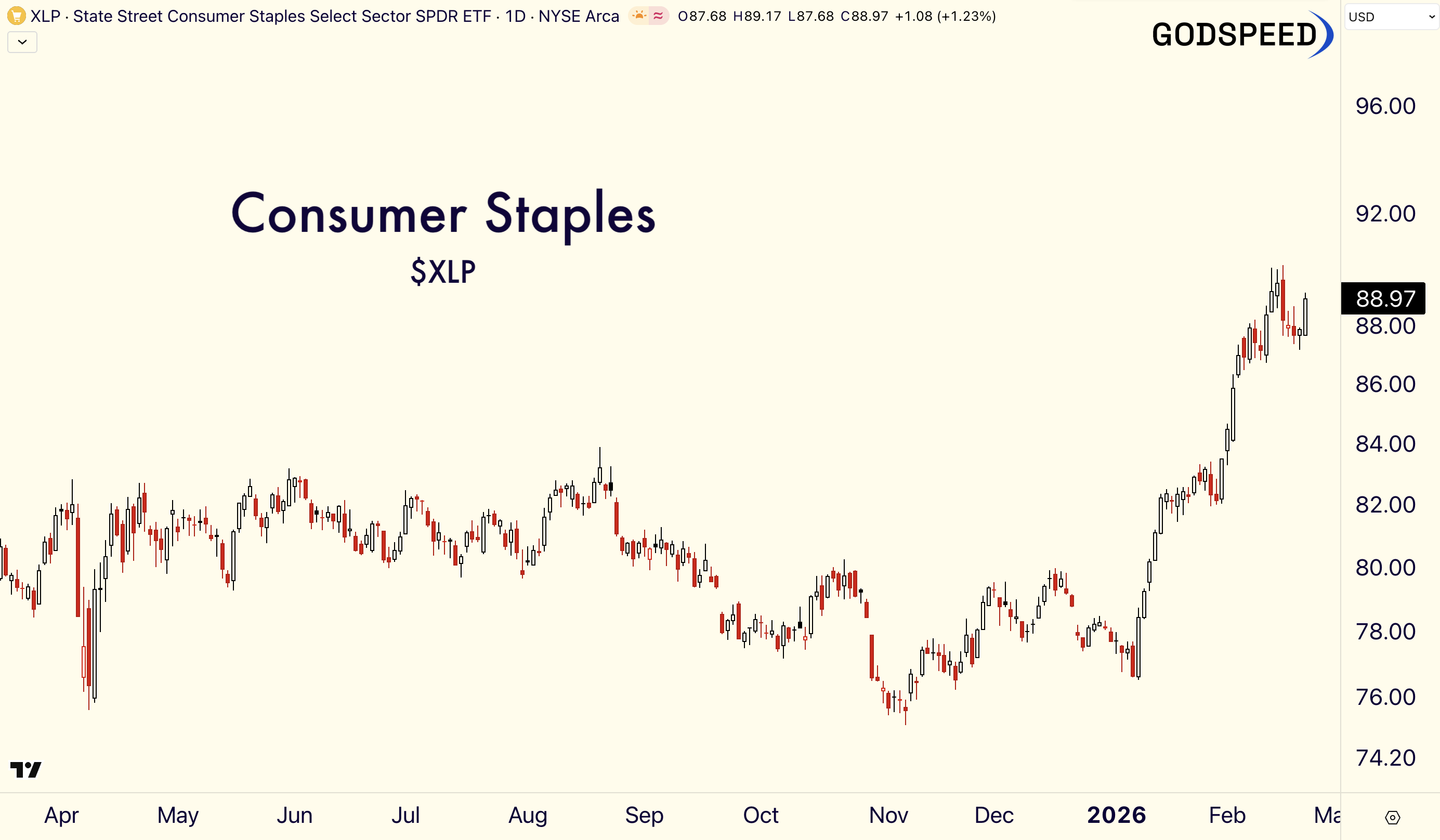 On the flip side, consumer staples surged to all-time highs. $XLP is parabolic. Signs of risk-off appetite.