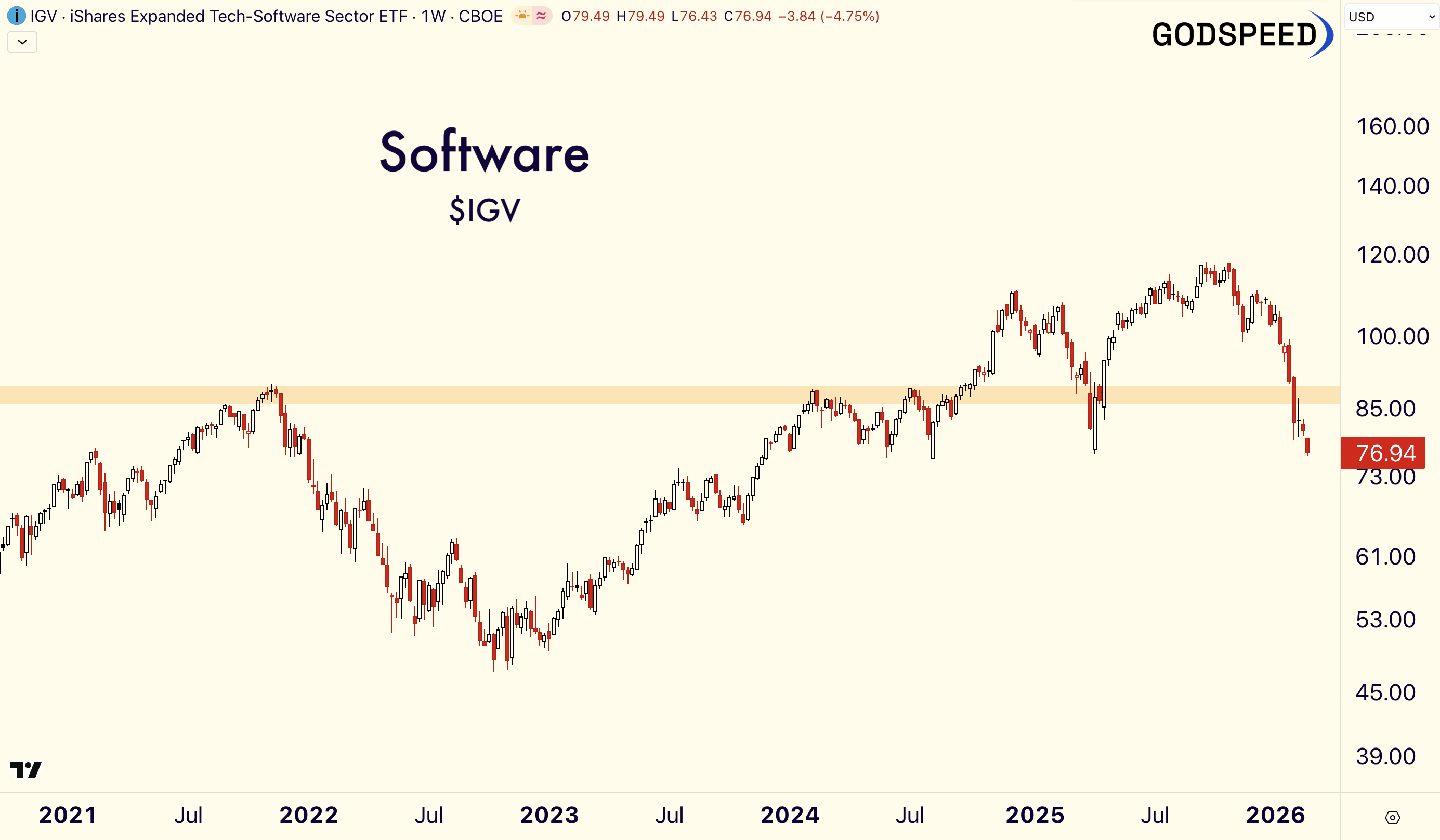 Software is the talk of the town - a potential catalyst for greater unwind. $IGV closed BELOW its Software Sell-off on February 5th.