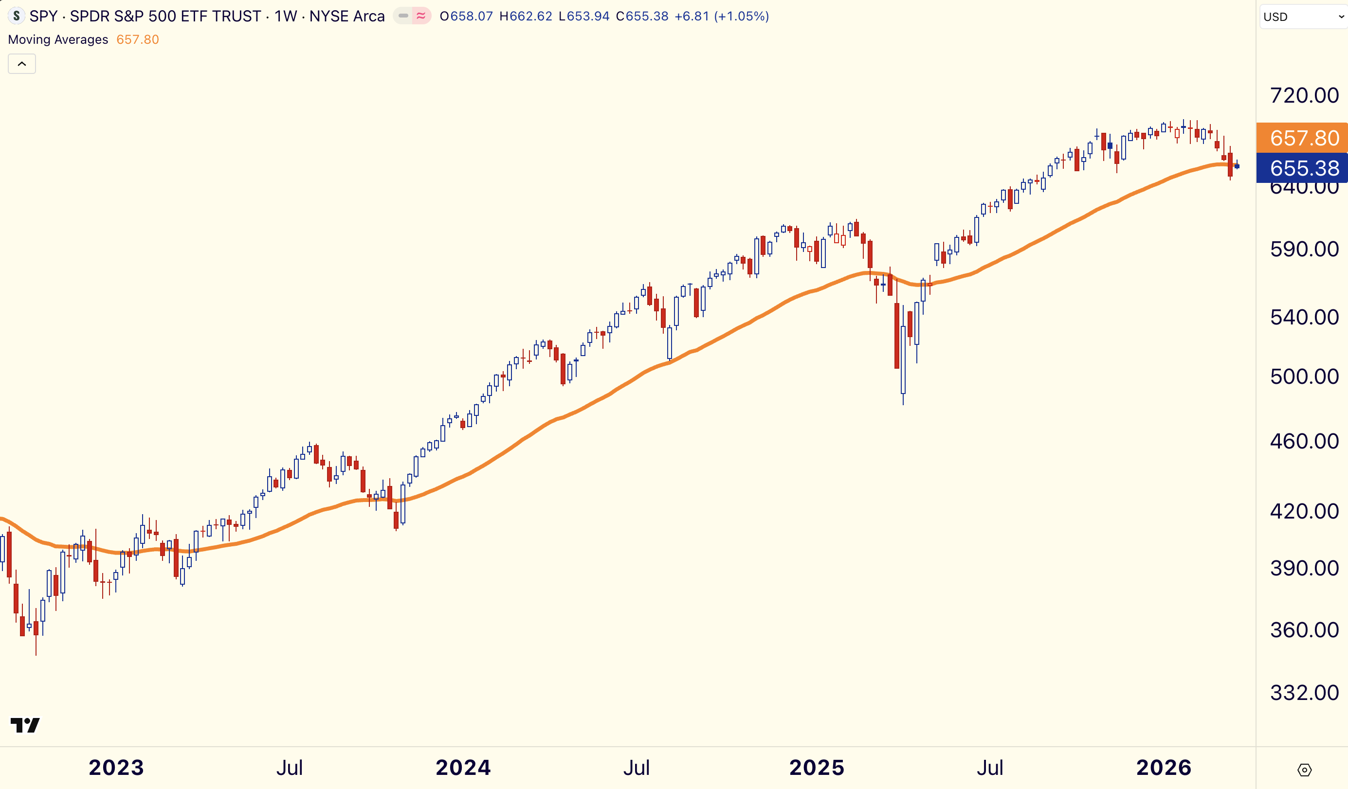 Here’s the weekly S&P 500 day chart 2 points below it 40W (200D) moving average. The pros own the close!